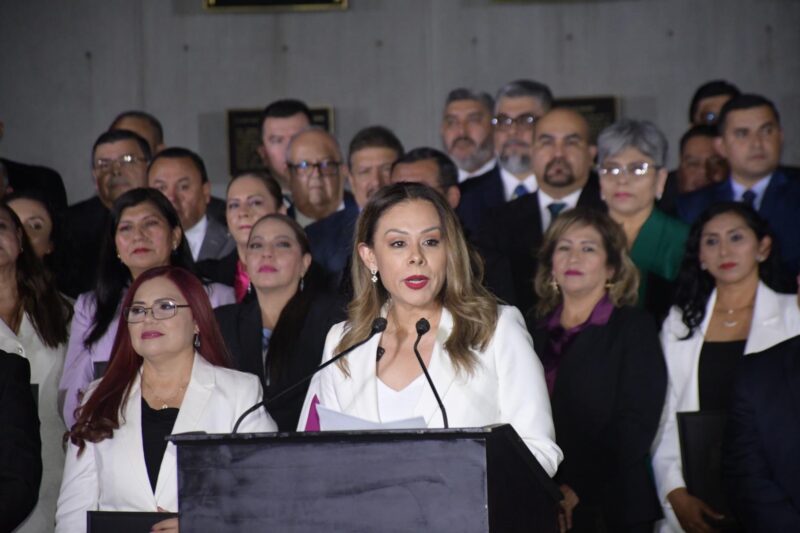 Posteriormente, Contreras López dio un mensaje, acompañada del resto de los nuevos integrantes del Poder Judicial del Estado.