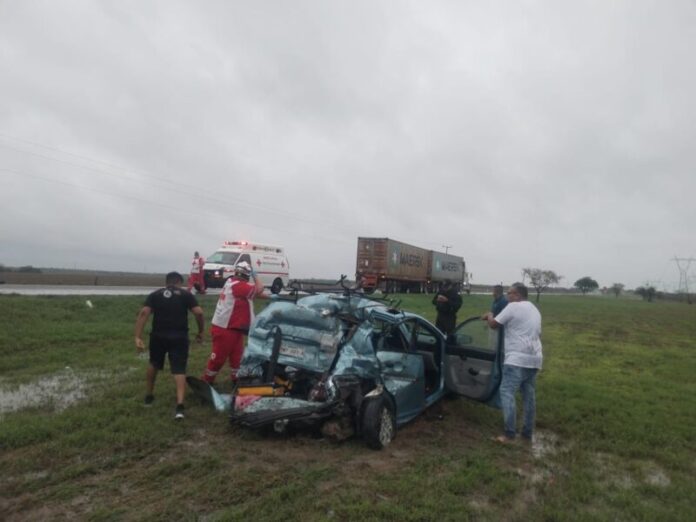 GONZALEZ. – Personal de la Guardia Estatal de Apoyo Carretero atendió un accidente vehicular en el kilómetro 9 del libramiento Villa Manuel – González, sobre la Carretera Federal número 80, donde un automóvil particular colisionó contra un tractocamión, dejando como saldo al menos cuatro personas lesionadas.