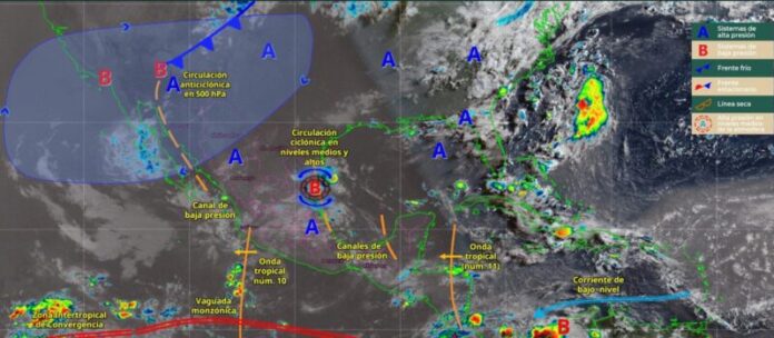 La aproximación de una nueva onda tropical (número once) a la Península de Yucatán, originará lluvias puntuales fuertes en zonas de Yucatán; y chubascos en Quintana Roo y Campeche.