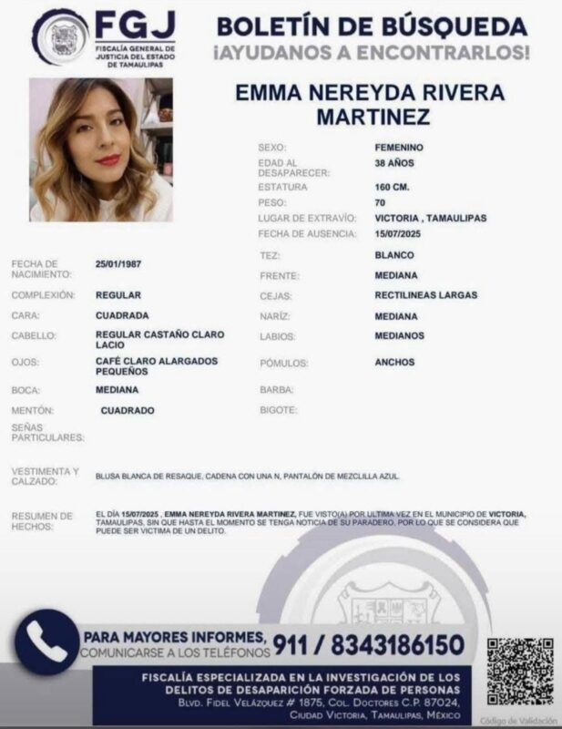 Cabe recordar que respecto a la desaparición de Emma Nereyda la Fiscalía General de justicia del Estado informó el pasado 21 de julio sobre la detención de J. Hidalgo, L., principal sospechoso de su desaparición, quien presuntamente usaba una cédula profesional para ostentarse como abogado, la cual fue descubierta como falsa.