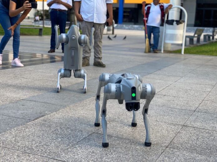 “Nos aliamos con esta empresa encargada de desarrollar plataformas robóticas en México, somos los primeros en Tamaulipas en tener uno de estos perritos dando vueltas, apenas estamos experimentando con ellos, viendo que pueden hacer que no, cómo conectarnos a ellos como programarlos y demás cosas”, añadió.