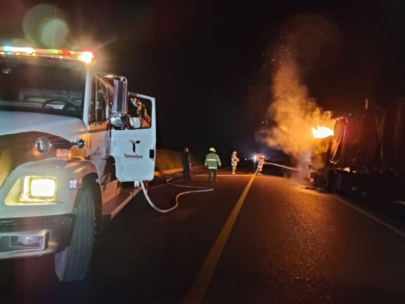 CIUDAD VICTORIA.- Esta mañana, personal de Protección Civil Tamaulipas atendió el incendio de un tractocamión.