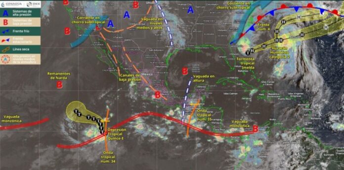 CIUDAD VICTORIA. – Para hoy, la onda tropical número 35 se desplazará lentamente al sur de la Península de Yucatán, y en interacción con la entrada de aire húmedo del Mar Caribe ocasionará lluvias puntuales muy fuertes en Quintana Roo, Yucatán y Campeche, informó el Servicio Meteorológico Nacional.