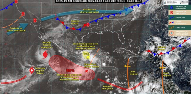 CIUDAD VICTORIA. – Para hoy el huracán Priscilla se desplazará frente a la costa oeste de Baja California Sur.