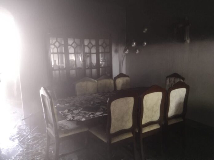 El fuego afectó principalmente el área de la cocina, dañando en su totalidad la estufa, el refrigerador, la alacena, así como parte de la estructura del inmueble, presentando daños visibles en muros y techumbre.
