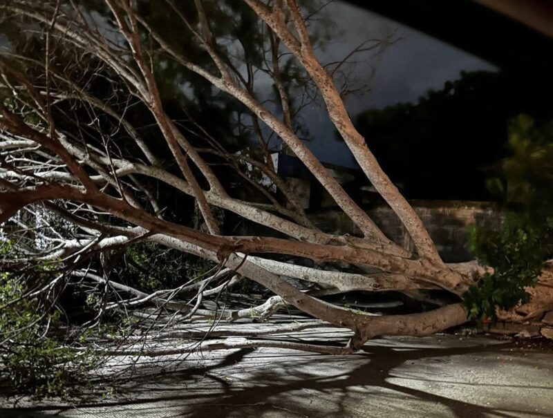 A consecuencia de las fuertes lluvias y ráfagas de viento, se registró la caída de árboles: en la Calle Mártires de Cananea de la colonia Revolución Verde, en la curva para incorporarse al Bulevar Praxedis Balboa después del Paseo Méndez, en el 18 Berriozábal y Anaya, en la colonia Chapultepec, en la calle Gladiola con Jaime Rodriguez Inurrigarro de la colonia Moderna, en la colonia Echeverría, en la esquina de las calles 11 y 12, en la Calle Sierra Hermosa y Calle 16, y en la Avenida de la Unidad frente al Fraccionamiento Villas del Carmen.