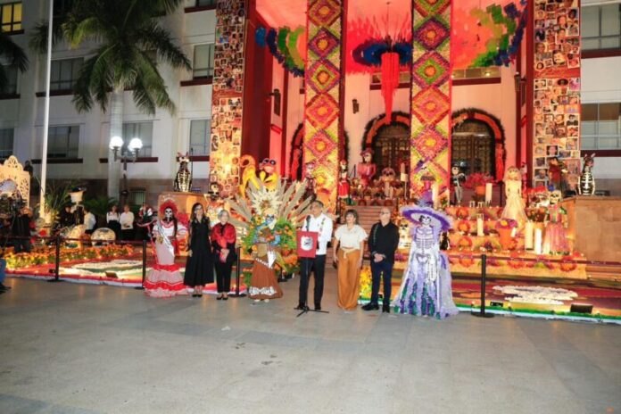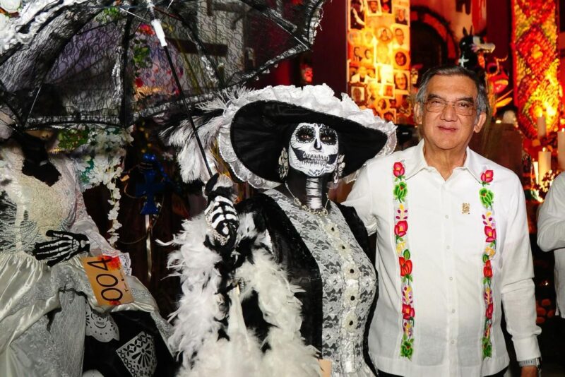 En un ambiente impregnado por el aroma de la flor de cempasúchil, el pan de muerto y las luces de las velas, el gobernador Américo Villarreal y la presidenta del Sistema DIF Estatal, Dra. María de Villarreal, presidieron la premiación del concurso estatal de catrinas y catrines «Almas Tamaulipecas» y la muestra del altar monumental del Día de Muertos en las escalinatas de Palacio de Gobierno .