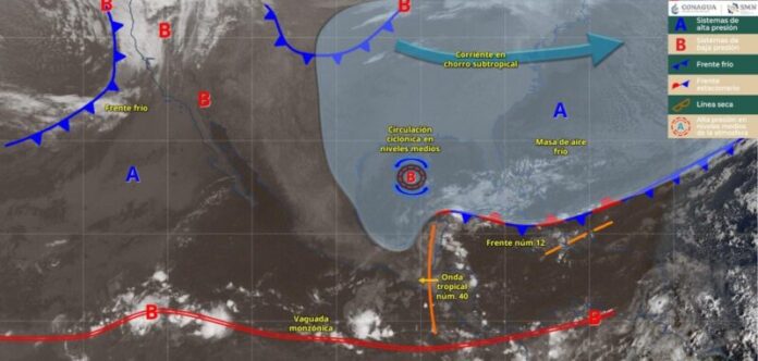 El SMN de la Conagua señaló que al final del día, se prevé que el frente frío número 12 se disipe sobre el Mar Caribe.