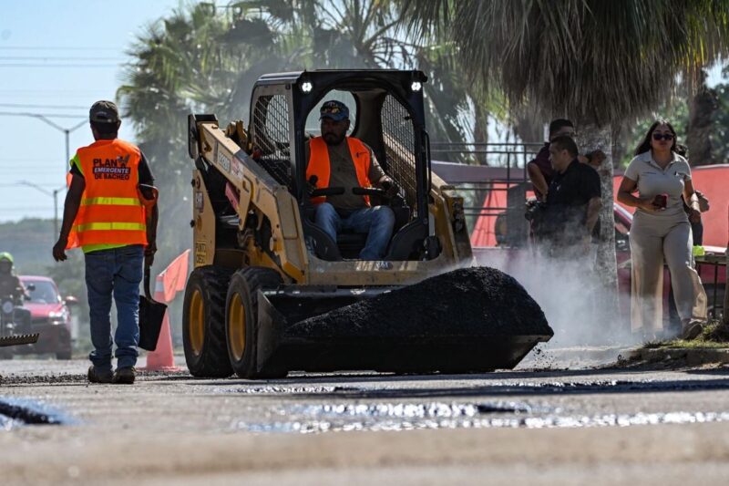 Durante el recorrido, informó que las ocho cuadrillas habilitadas en el Plan de Bacheo Permanente intensifican labores para atender las rutas más transitadas y garantizar calles más seguras y en mejores condiciones.