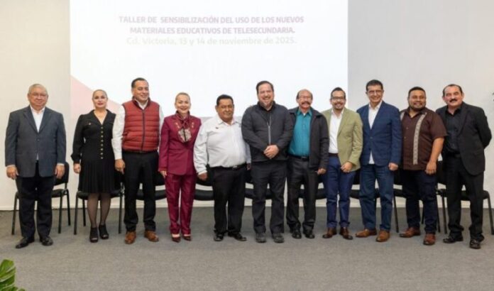 Ciudad Victoria, Tamaulipas.– Con el propósito de sensibilizar sobre el uso de los nuevos materiales educativos y elevar el aprovechamiento escolar entre las y los estudiantes de telesecundaria, se llevó a cabo el curso-taller en el que participan supervisores escolares, Asesores Técnicos Pedagógicos (ATP) y directores de las 80 telesecundarias que hay en Tamaulipas.