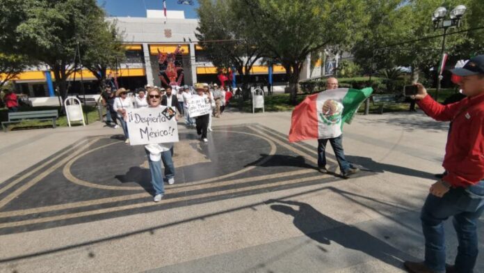 Con cartulinas y mensajes, como “Despierta México”, el grupo de manifestantes inició su recorrido en la Plaza Hidalgo, para avanzar por la calle Hidalgo y llegar a la Plaza Juárez.
