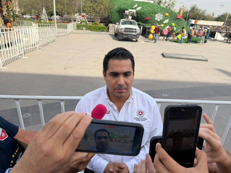 Reynosa.- La caída del pino navideño instalado en la Plaza Principal volvió a poner en evidencia los riesgos asociados a estructuras temporales ante condiciones climatológicas adversas. Aunque autoridades municipales aseguraron que la situación estuvo “controlada”, la estructura colapsó durante las labores de retiro, presuntamente a causa de ráfagas de viento de entre 40 y 60 kilómetros por hora provocadas por el frente frío número 27.